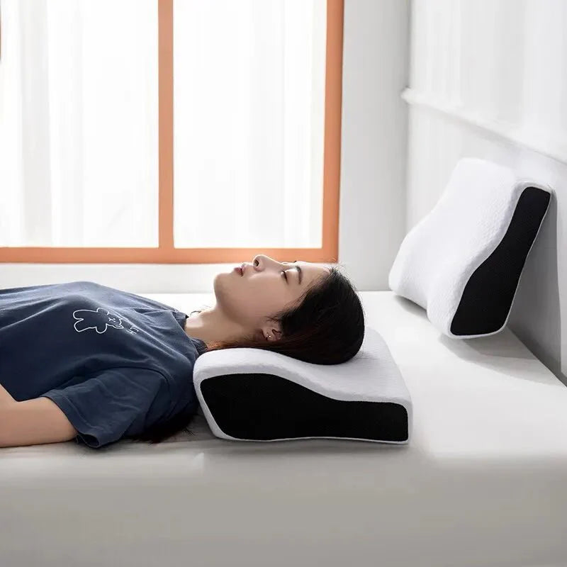 O Travesseiro Ortopédico Cervical foi projetado para fornecer o alinhamento ideal do pescoço e coluna, ajudando a reduzir a dor cervical e manter as vias aéreas irrestritas para aliviar o ronco.